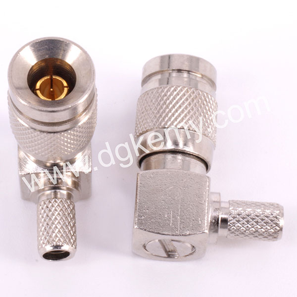 1.0-2.3 Male Right Angle Plug / CC4 Conn, Crimp Connector, Use for Mini RG59, Beldon 4855 / 1855A
