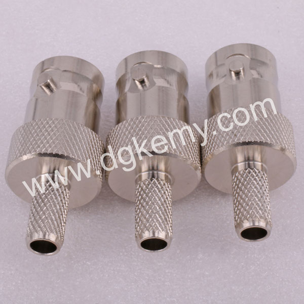 Radio Frequency BNC Female Straight Jack Crimp Connector for RG58 LMR195 Coaxial Cable, with high quality, no MOQ and FREE SAMPLES, KeMy Electronic Technology Inc. is professional in producing RF cables as well, feel free to contact our sales team at sales@dgkemy.com customize cable asssembly now, we will reply to you within 12 hours.