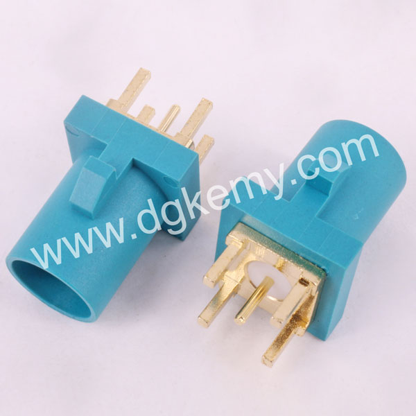 FAKRA SMB Male Plug Vertical Connector for PCB Mount, Code Z, Water Blue
