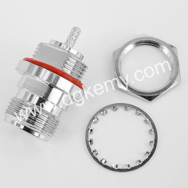 N Female Jack Front Panel Mount with O-ring for RG174 RG316 Coaxial Cable, Waterproof, Crimp Connector