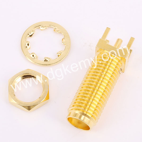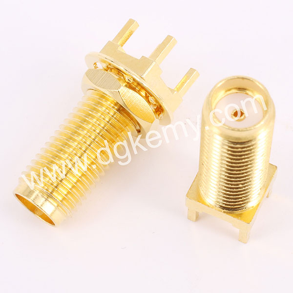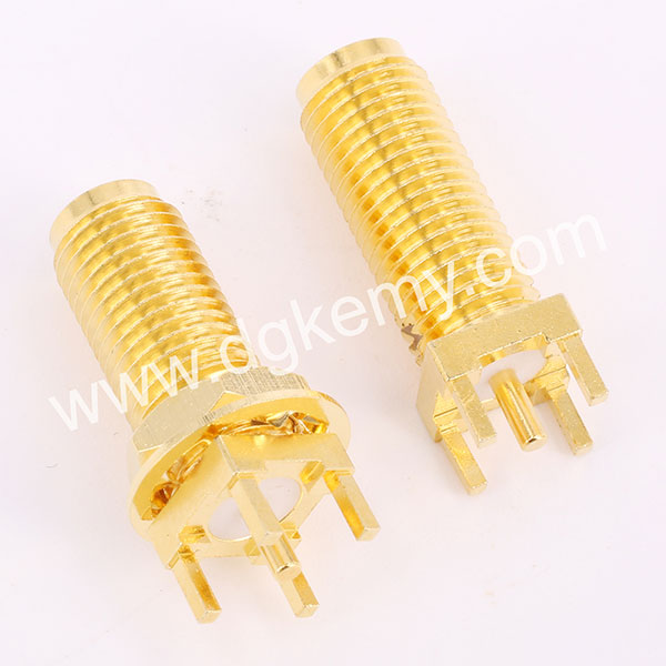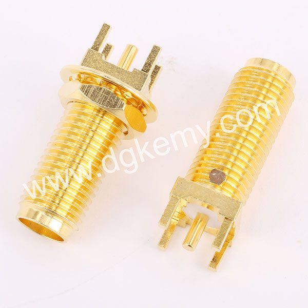 RF SMA Female Vertical Bulkhead Jack Connector for PCB Mount, 15mm thread