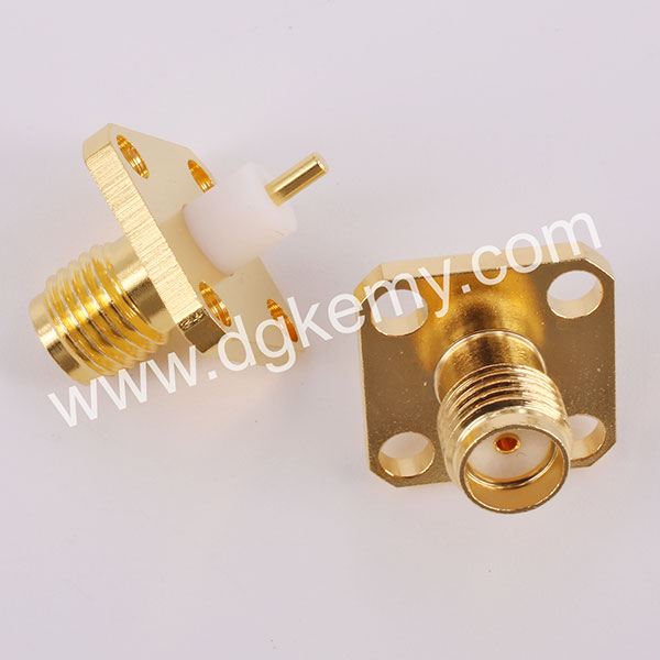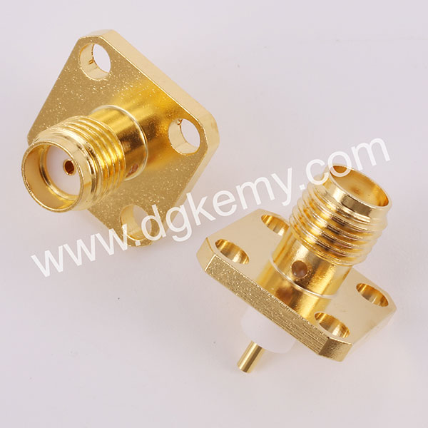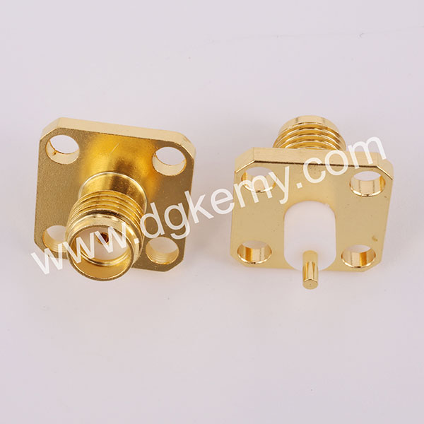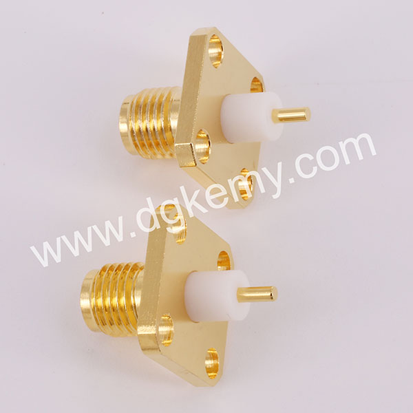 SMA Female Straight Jack Receptacle, 4-holes Square Flange Panel Mount, 4mm Insulator, 18 GHz Connector