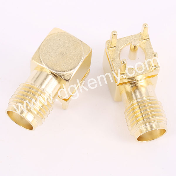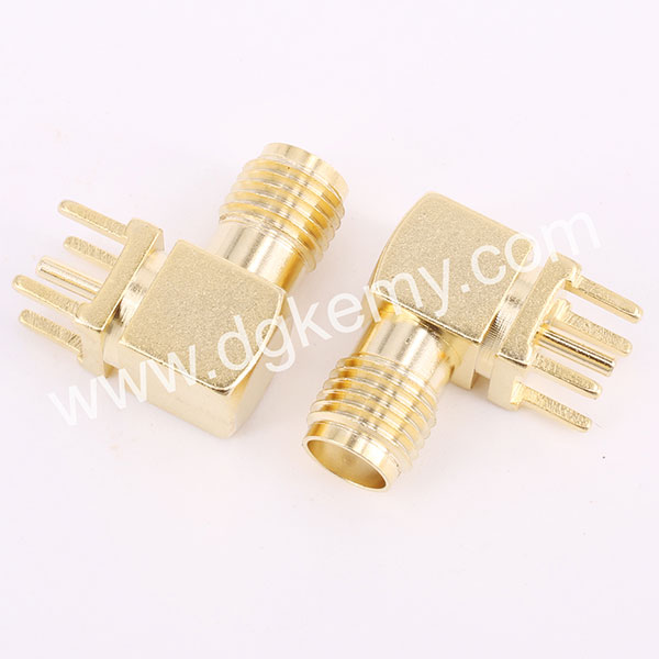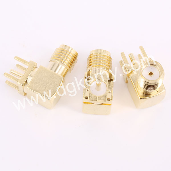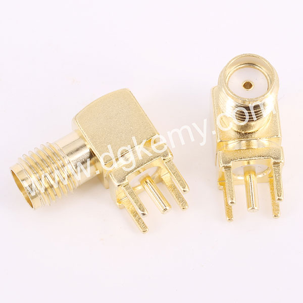 RF SMA Female R/A Jack Connector for PCB Mount, with high quality, thick gold plated, no MOQ and FREE SAMPLES, KeMy Electronic Technology Inc. is professional in producing RF cables as well, feel free to contact our sales team at sales@dgkemy.com customize cable assembly now, we will reply to you within 12 hours.